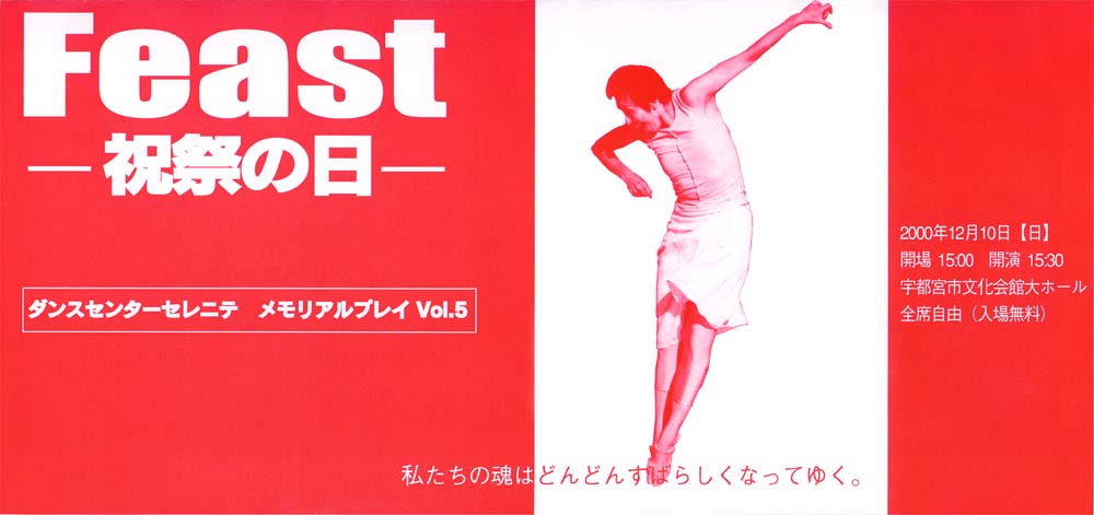 ダンスセンターセレニテ(妻木律子先生主宰)では、12月10日(日)15:30より宇都宮市文化会館大ホールで「Feast〜祝祭の日〜 メモリアルプレイ Vol. 5」を開催します。