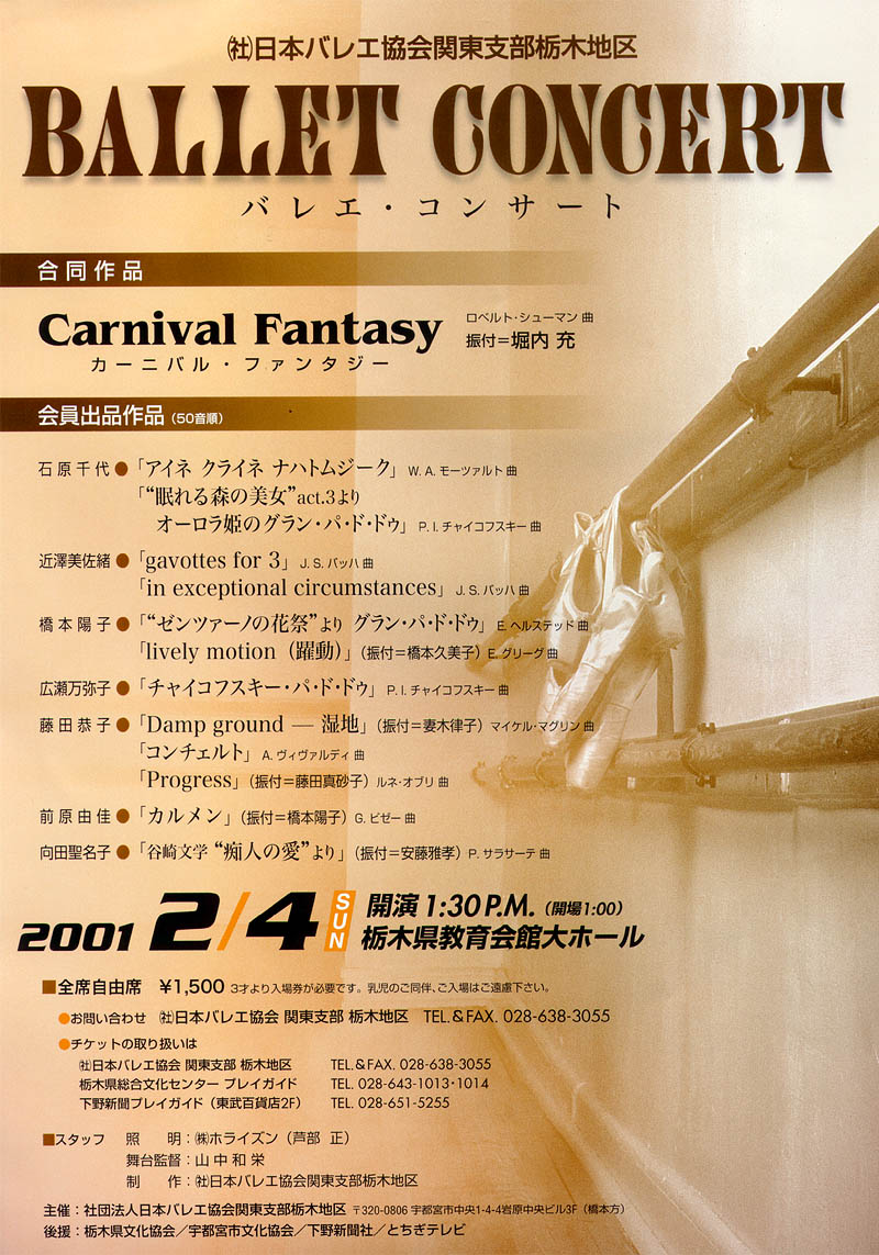 公演チケットは1,500円(全席自由席)で、当スタジオの林みどりが公演事務局として取り扱っています。観覧ご希望の方は、下記フォームでお申し込みください。また栃木県総合文化センタープレイガイド、東武宇都宮百貨店内下野新聞プレイガイドでもチケットを販売します。